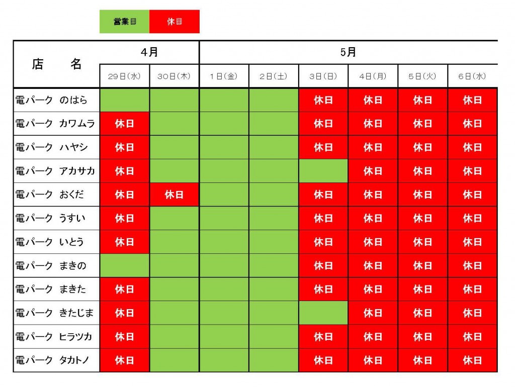 ゴールデンウィークの休日のお知らせ